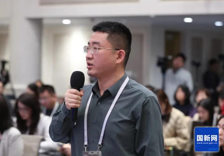 中央广播电视总台央视记者提问(刘健 摄)